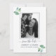 Elegant, simple photo wedding save the date invitation with green eucalyptus foliage on a white background. The back of the card is a chic dark blue. Simply customise this elegant save the date with your engagement photo, names and wedding date. Exclusively designed for you by Happy Dolphin Studio. If you need any help or matching products, please contact us at happydolphinstudio@outlook.com. We're happy to help you make your wedding the most beautiful day!