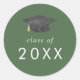 Chic Green Grad Cap Class Year Graduation Classic Round Sticker