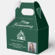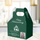 This professional green and white favor box is customized with your real estate company name and realtor photo under the modern cursive script. Congratulate your clients on a Happy Housewarming with these custom congratulations boxes. Add your realty agent photo for marketing underneath the modern house logo.