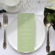 Chic and fresh with youthful undertones. This template features 3 courses and drinks, along with a floral monogram with couple initials at the very top of the card. Colours include light green and white. The back of the card comes in the same soft mint green colour.