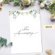 Celebrate the joy of your wedding anniversary with this beautiful elegant anniversary invite! Ability to add any anniversary number you need. Design with exquisite watercolor Eucalyptus greenery leaves framing your anniversary details. Your "number Wedding Anniversary" phrase in a beautiful blend of handwritten calligraphy and block typography. Elegant back with the same Eucalyptus greenery floral detail from the front and the "number wedding anniversary" phrase. Part of our "Minimal and Graceful Eucalyptus Wedding" collection with a great variety of coordinating products, from mailing accessories to all event signs and products for the special event.