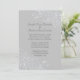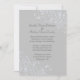 Elegant wedding invitation done in grayish taupe, with graphics of white embossed looking swirls, in the top right and bottom left corners. Personalise the custom text for your wedding celebration. Matching products are available.