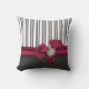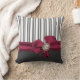 Stylish charcoal grey and white striped decorator pillow, with lovely graphics of a maroon satin like bow with a pearl accent. Pretty addition to any room and makes a great gift idea.
