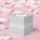 Chic grey personalised favour box for bridal shower or ceremony or any occasion. Has lace look ribbon around box