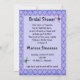 Chic Halloween Bridal Shower Invitation with Bride locked in House staring out of window with a spooky tree, a raven and spiders and purple candles. Raven is sitting on headstone that says evermore. Has matching postage stamp.