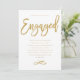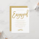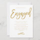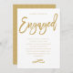 Chic and modern engagement party invitation for the future Mr. and Mrs. with modern gold lettering and a patterned back design.