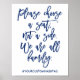Chic Hand Lettered Wedding Sign that says "Please choose a seat, not a side. We are all family." Add your custom hashtag for a personalised touch.