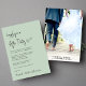 Stylish sage green elopement or private wedding announcement and wedding reception invitation featuring "Happily Ever After Party" in a chic modern script, your marriage announcement and invitation in classic serif typography and your names in a signature-like script. The back features your photo, first names and wedding and reception dates.