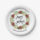 Chic Happy Holidays Script Poinsettia Monogram Paper Plate