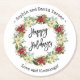 Chic Happy Holidays Script Poinsettia Monogram Round Paper Coaster
