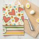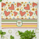 Chic Heart Floral Pattern Monogram Initial Tea Towel