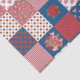 A sheet of Folk Art Style Tissue Paper, with a faux-patchwork of hearts and red rose patterns. Part of the Posh & Painterly 'Hearts & Roses' collection.