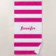 Chic Hot Pink and White Stripes Personalised Beach Towel