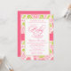 This stylish baby shower invite has a sweet hot fuchsia pink, white, and lime green paisley design in the background. In the middle, there is a pink band. In the centre, you can easily customise the baby shower information.