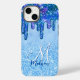 Chic ice blue ombre glitter drips monogram noteboo Case-Mate iPhone case