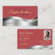 Chic Indian Red Wavy Silver Decor Initials Photo Business Card