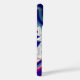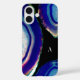Elegant and eyecatching phone case features a vibrant image of agate geode slices in bright shades of indigo, blue, and purple on a black background. Personalise with your initials or monogram tucked into the design in classic white lettering.