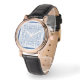 Chic Indigo Blue Floral Border Women's Wristwatch