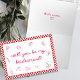 Indulge in the perfect blend of Italian romance and bridal elegance with our "Will You Be My Bridesmaid?" card. Adorned with a vibrant red chequerboard border and charming Italian-themed illustrations, this card is the epitome of sophisticated fun. The front features a heartfelt proposal question in chic, red script, while the inside reveals the timeless phrase "That's Amore," encapsulating the essence of love and celebration. Whether you're planning a vintage-inspired wedding or an Italian-themed bridal party, this card is designed to make your bridesmaid proposal unforgettable. Say it with style, say it with amore!