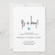 A modern minimalist baby boy birth announcement. This card has a clean, fresh calligraphy 'it's a boy' design which suits modern parents. Add your own customised messages.