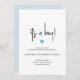 With its cute little blue motif, it's perfect for a baby boy announcement card or for hosting a shower party honouring a new parent. A clean uncluttered look with a chic font and optional heart.