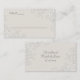 Elegant wedding flat place cards done in ivory, with graphics of white embossed looking swirls, in the corners. Personalise the custom text to suit your needs.