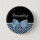 A chic and stylish dusty blue and black jaguar print button with a light blue ribbon tied into a cute bow. Personalise this trendy animal print name tag by adding the name of your teen girl. Flat printed image, not actual bow.