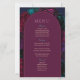 Chic jewel tones floral burgundy navy wedding menu. Add a touch of elegance to your reception with this chic jewel-toned floral wedding menu. Featuring a sophisticated palette of burgundy, navy, fuchsia, magenta, turquoise, and purple florals, this design beautifully complements a rich and romantic wedding theme. The stylish typography and modern layout highlight each course with grace and clarity, ensuring your guests enjoy a seamless dining experience. Perfect for fall, winter, or evening weddings, this menu card is both a practical and decorative addition to your tablescape.