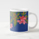 Chic Jumbo-sized Coffee Mug, Pink Japonica on Blue Large Coffee Mug