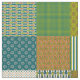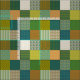 A chic Faux Patchwork fabric with squares of various patterns that coordinate with the Posh and Painterly "Jungle Drums" collection.