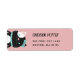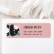 Pink address label featuring a chic black-and-white cat with turquoise bow and pretty pearl necklace.