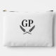 Chic laurel crest monogram logo large cosmetic bag. Classy Accessory Pouch design personalised with your name initials and colours. Elegant bags for home and travel. Black and white. Suitable for men and women.