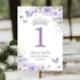 Chic Lavender Purple Floral Quinceañera Sweet 16 Table Number