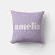 Cute pillow that features your monogram name or initials in a popular bold white font and a pastel lavender purple background. You can adjust the size of the font in the design tool for shorter or longer names. Perfect bedroom and dorm room decor.