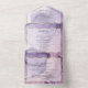 All in One Wedding - Dreamy splash of alcohol ink stains in shades of soft lavender and rose tones- each section highlighted with a sheer white overlay framed in gilded gold, for an ethereal appeal a beautiful modern abstract design for an all in one wedding invitation complete with pre-addressed detachable meal choice rsvp for your guests to easily mail back - a stunning all in one wedding invitation - Easy to customise template.