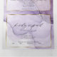 Dreamy splash of alcohol ink stains in shades of soft lavender and rose tones- each section highlighted with a sheer white overlay framed in gilded gold, on the front centre is your photo accented with a double gold frame and behind the sheer white overlay for an esoteric appeal a beautiful modern abstract design for an all in one wedding invitation complete with pre-addressed detachable meal choice rsvp for your guests to easily mail back - a stunning all in one wedding invitation -