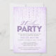 A chic birthday party invitation design featuring a pretty soft lavender background with an image of sparkly rain drops and the words "21 Again Party" stylishly typeset featuring the word "Party" filled with an image of lavender glitter.