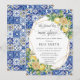 This modern summery bridal shower invitation card features a gold geometric frame adorned by watercolor lemons, yellow blooms and green foliage. Designed to match our Lemon Mediterranean wedding collection. Personalise it with your details easily and quickly, simply press the customise it button to further re-arrange and format the style and placement of the text.