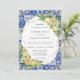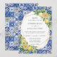 This modern summery wedding invitation card features a gold geometric frame adorned by watercolor lemons, yellow blooms and green foliage. Designed to match our Lemon Mediterranean collection. Personalise it with your details easily and quickly, simply press the customise it button to further re-arrange and format the style and placement of the text.