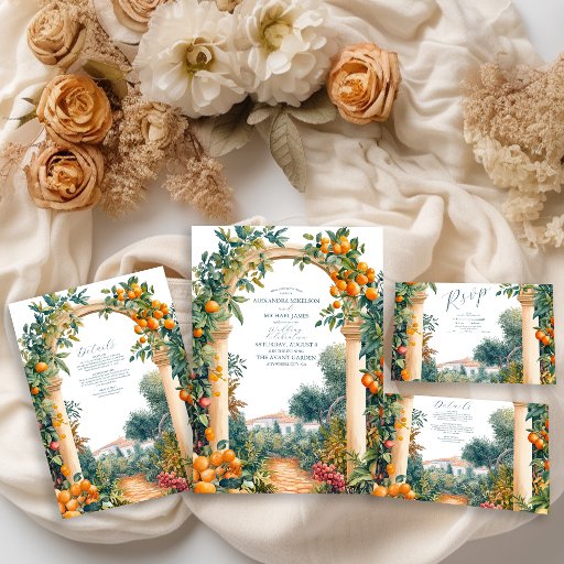 Chic Lemon Mediterranean Summer Wedding Invitation