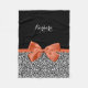 Chic Leopard Print Burnt Orange Bow With Name Fleece Blanket