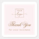 Chic, light pink and white business thank you sticker with your logo and the text “thank you" printed in a romantic calligraphy script font with a white border along the edge. You can change the font, font color, border color and background color with the design tool.