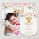 Chic Lion Cub Blush Pink Floral 1st Birthday Photo Invitation