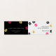 Folded referral card for a beauty salon or makeup artist with lipstick marks in black, hot pink, and faux gold scattered over the white background. Add your referral information and conditions inside the folded card, along with room for the referral's name and other info. Add your business name and contact information in the back. A chic referral card for a makeup artist!