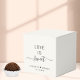 Chic light cream wedding favour box that features "love is sweet" in simple modern typography and an elegant script with swashes, your first names joined together by a heart and your wedding date.
