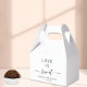 Chic wedding favour box featuring "love is sweet" in simple typography and an elegant script with swashes, your first names joined together by a heart and your wedding date.