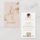 Make a refined and unforgettable first impression with our elegant, modern, and luxurious fashion business card design. The front of the card features our exclusive hand-drawn, sketch-style illustration of a faux gold, elegant mannequin with a flowing dress, beautifully paired with faux gold leaves for a chic, sophisticated look. All illustrations are finished in an elegant faux gold tone and set against a soft light blush pink background, which can be customized to perfectly match your fashion branding. Personalize the front with your name or replace it with your logo to beautifully showcase your fashion brand. The reverse side features a clean, stylish layout for your contact details, including a circular photo frame for your professional portrait and space for a QR code—ideal for linking to your website, online booking page, or social media profiles. Perfect for fashion designers, stylists, and boutique fashion studios, this elegant design blends creativity, sophistication, and professionalism, leaving a high-end impression on every client. Design and illustration by © Moodthology Papery.