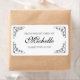 Elegant black and white Made with love by / From the kitchen of food labels. Stylish script typography template with ornate swirly borders. Classy design with custom colour background. Handy DIY kitchen sticker tags for homemade cooking and baking products like Christmas cookies, sweets, cupcakes, candy, cakes, Holiday treats, jelly, honey etc. Vintage country chic style canning wrap. Big extra large size.