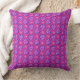 A romantic Throw Pillow or Cushion with a pattern of hearts and flowers on a magenta background. From a hand-painted paper collage by Judy Adamson, this pattern can be adjusted to fit any Pillow or Cushion.