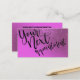 This is the perfect Appointment Card for a trendy, stylish, and modern business. This design features a simple black handwritten brush script typography on a faux printed diagonal sparkly dark magenta purple glitter and bright magenta purple ombre gradient glamourous and chic background. These cards will add that personal and professional touch to your business and career advertisement.